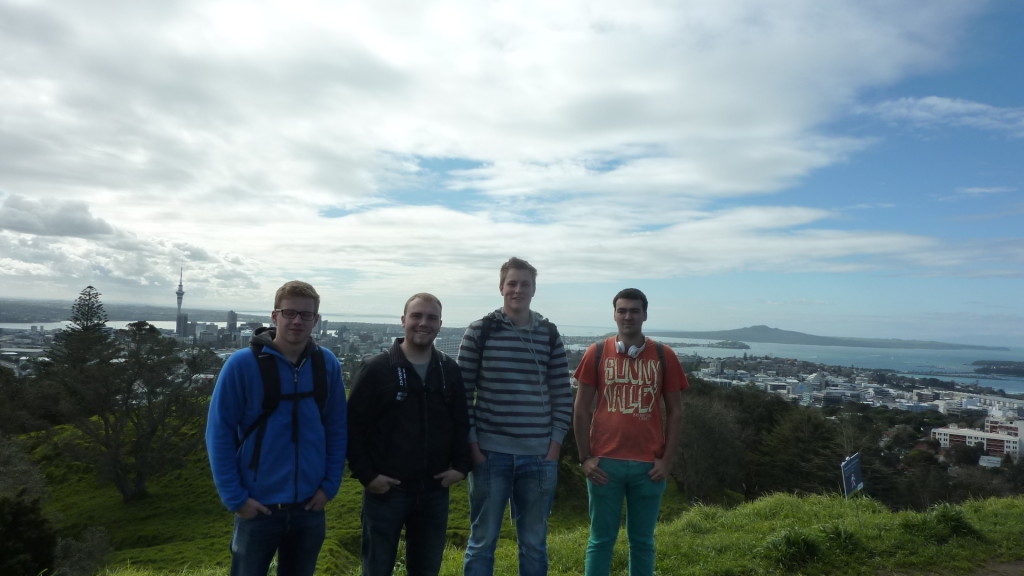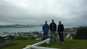 Auf der Suche nach weiteren Aktivitäten sind wir auf Devenport gestoßen. Ein etwas abgelegener Stadteil, der bequem mit der Fähre zu erreichen ist. Dort haben wir den Mount Victoria bestiegen, von wo man einen fantastischen Blick auf Auckland, die umliegenden Inseln (Waiheke Island, Rangitoto) und den Pazifik hat. Der bald einsetzende Regen hat uns nicht davon abgehalten, viele Fotos und Videos zu machen. Am Abend bin ich dann zum Mount Eden gewandert, um mich dort mit Nicole und Lara zu treffen; Zwei Mitschülerinnen aus meiner alten Stufe, die ihre Zeit in Auckland als Au Pair verbringen. Der Mount Eden, die höchste, natürliche Erhebung in Auckland, ist ein nicht aktiver Vulkan, der einen spektakulären 360° Blick über Auckland und Umgebung bietet. Zuguterletzt sind wir auf den Skytower gefahren. Dieser ist mit 328m der höchste Turm der Südhalbkugel und bietet mit seiner Panoramaplattform einen noch unglaublicheren Blick über Auckland und Umgebung.
