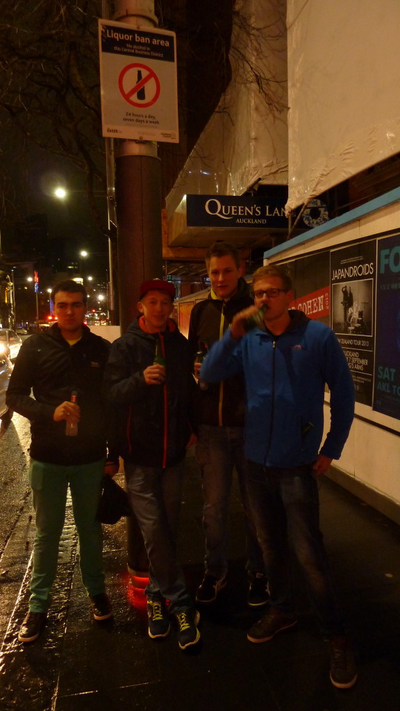 Über Kuala Lumpur, Malaysia, bin ich nun nach 22h in Auckland, Neuseeland, gelandet. Während dem Flug haben sich bereits erste Kontakte zu anderen Backpackern ergeben. Nachdem wir die Flughafen-Kontrollen passiert hatten, wurden wir gegen 1:30 Ohrtszeit (15:30 MEZ) mit dem Shuttle-Service zu unserem YHA-Hostel in Central Auckland gefahren, wo die nächsten 3 Nächte bereits für uns gebucht wurden. Glücklicherweise war alles sehr gut organisiert, sodass wir unsere Taschen und Rucksäcke sehr schnell im 4 Bed Dorm verstauen konnten. Nach kurzer Erkundungstour auf der Queen Street (Aucklands längster Einkaufsmeile) und dem ersten, neuseeländischen Pils fanden wir den Weg dann recht schnell ins Bett.