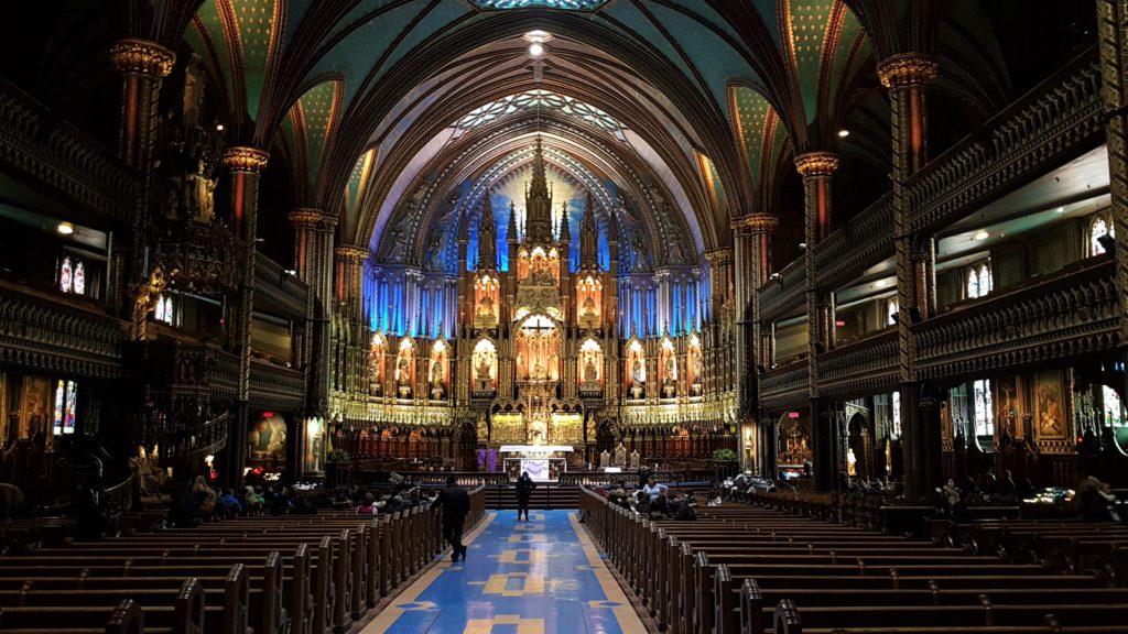 Unter zahlreichen Kirchen beeindruckt vor allem die Basilika Notre-Dame de Montréal, die vor über 350 Jahren errichtet und vor 35 Jahren von Papst Johannes Paul II. zur „basilica minor“ ernannt wurde. Im Zuge der Stillen Revolution in der Geschichte der Provinz Québec, die von der Säkularisierung der Gesellschaft und der Schaffung eines Wohlstandsstaates gezeichnet war, sank der Anteil der regelmäßigen Kirchgänger zwischen 1960 und 2014 von 90% auf 6% – dies ist der tiefste Stand in der gesamten westlichen Welt.