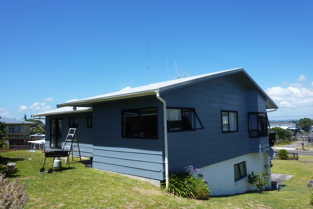 Strandhaus der Eltern in Pukahina- Deal: Hauswand streichen und im Gegenzug den Trip nach White Island bezahlt bekommen. Das Wetter war, wie zu sehen, ausgezeichnet. Leider war die Sea zu stark, um den Trip zu machen. Kleiner Trost: 120€ für 4 Stunden streichen wird so schnell kein Backpacker verdienen!
