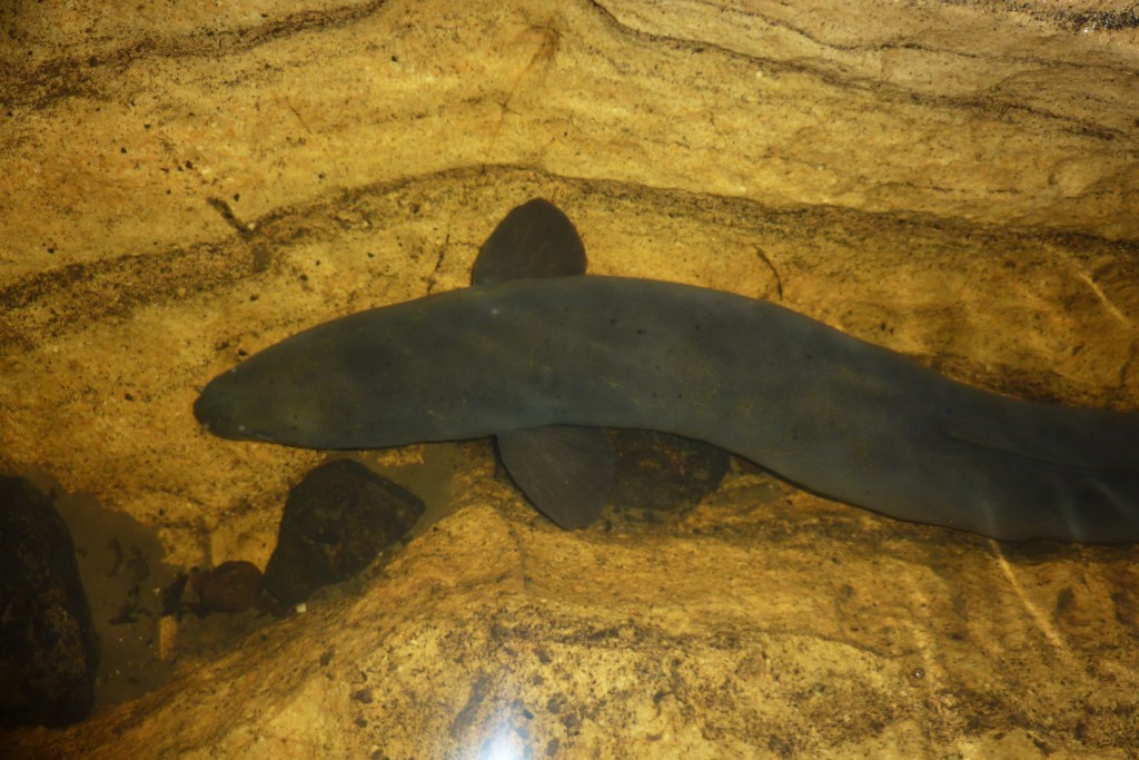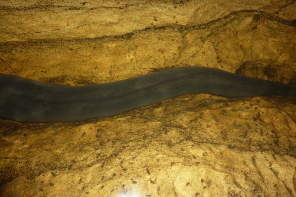 Shit! Kein gutes Gefühl, wenn man auf einmal von einem Riesenaal „angeschwommen“ wird. Dieses, in der Realität 2 Meter lange Monstrum, frisst binnen weniger Tage ein ganzes Schaf- so schnell habt ihr mich noch nicht rennen sehen! Das Foto habe ich dann aus sicherer Entfernung geschossen.