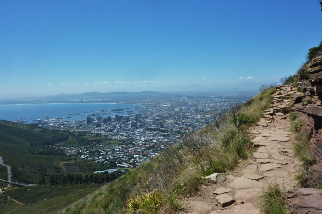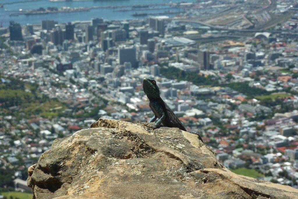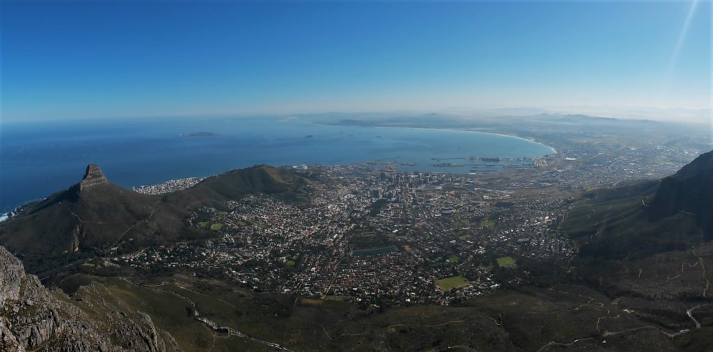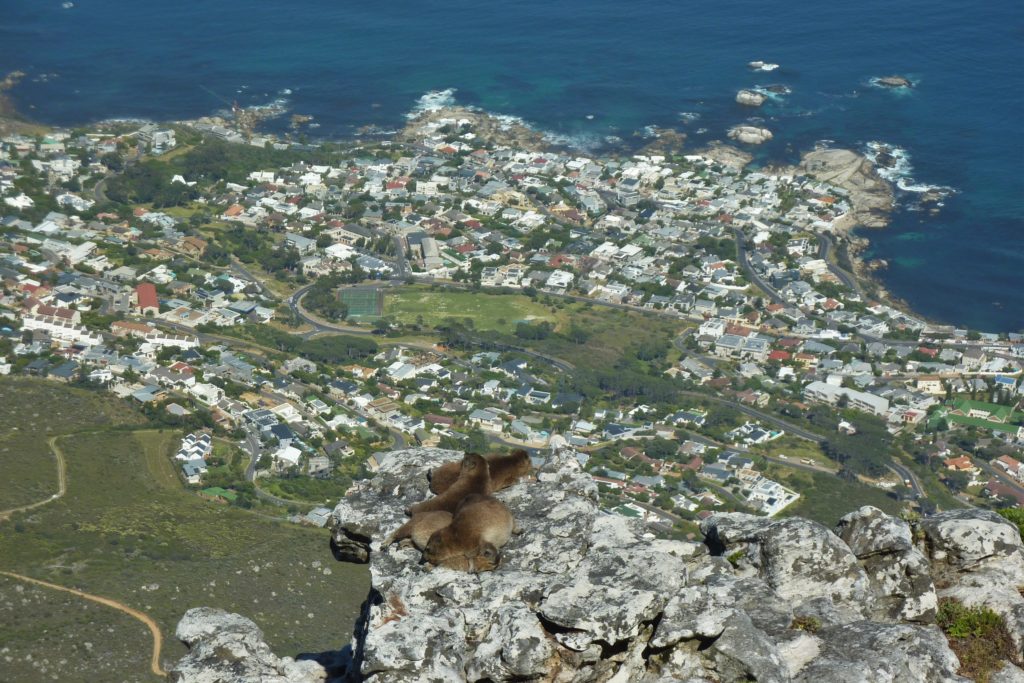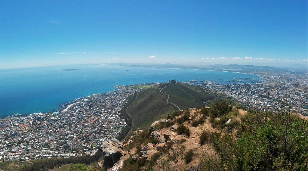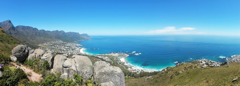 Der Lions Head (links oben im Bild) ist vergleichbar schön, aber um einiges schwieriger zu erklimmen. Zusammen mit Devil’s Peak und Signal Hill gehört er zum Massiv des Tafelbergs im Table Mountain National Park. Mitten in Kapstadt gelegen, befinden sich nördlich die Gefängnisinsel Robben Island und die Victoria & Alfred Waterfront mit vielen netten Restaurants, Cafes, dem WM-Stadion und der kilometerlangen Strandpromenade. Im Osten befindet sich die Innenstadt mit dem Malaysia-Markt und weiteren, kleinen Food- und Souvenir-Märkten und im Westen wohnen in Clifton und Camps Bay die Superreichen.
