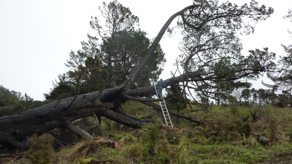 Die Hauptaufgabe bestand daran, eine Tanne, eine große Tanne, zu zerlegen, die den letzten Sturm nicht überstanden hatte: