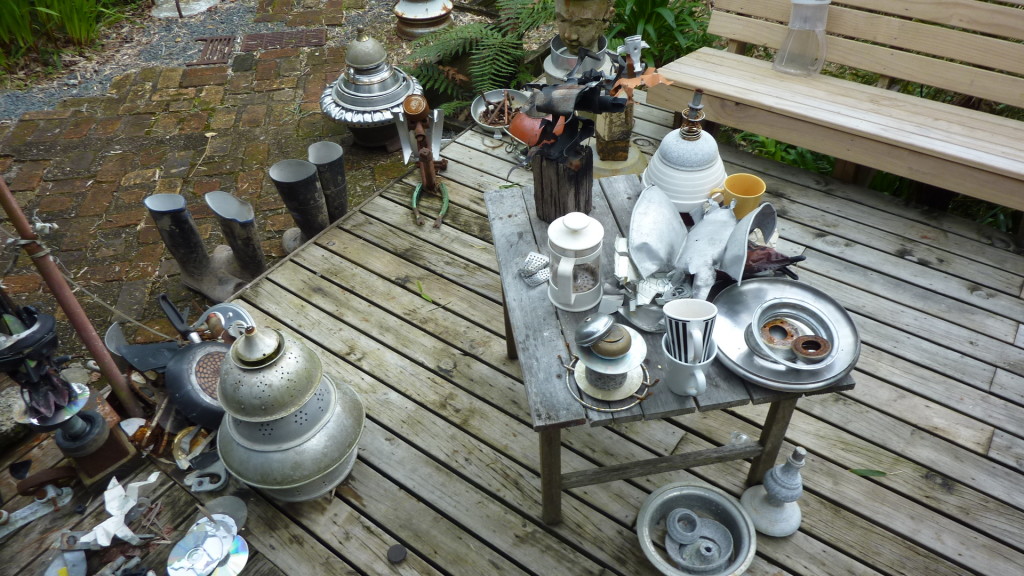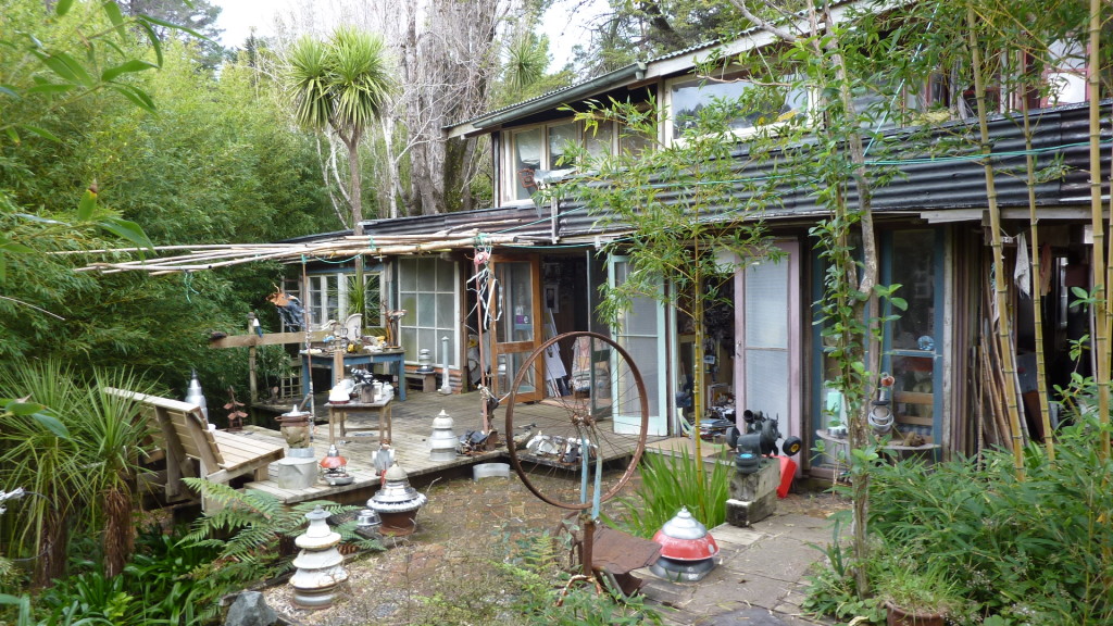 Gerade eben haben Paul und ich Frank besucht, den sehr verrückten, lustigen, netten Typen von nebenan. Ein, so beschreibt Paul ihn, Artist (Künstler), der aus Schrott noch mehr Schrott macht (so beschreibe ich ihn)… oder war es Kunst? Mh…Ein jedenfalls sehr lustiger Nachmittag mit Kaffee, Keksen und Gesprächen über Gott und die Welt. Hier einige Eindrücke: