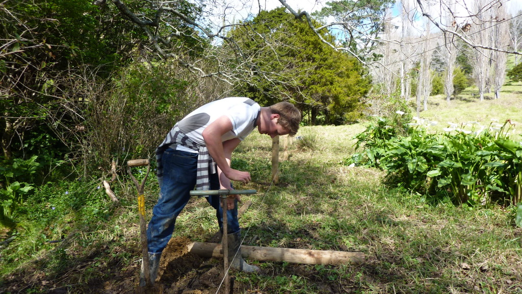 In Leigh angekommen wurde ich von Paul und Lois freundlich empfangen und begrüßt. Bevor wir zum 20 Minuten entfernten Grundstück fuhren hielten wir noch im Warehouse, um mich mit einer typischen Wwoofing Ausrüstung zu versorgen: Gummistiefel, Arbeitshose und Handschuhe.