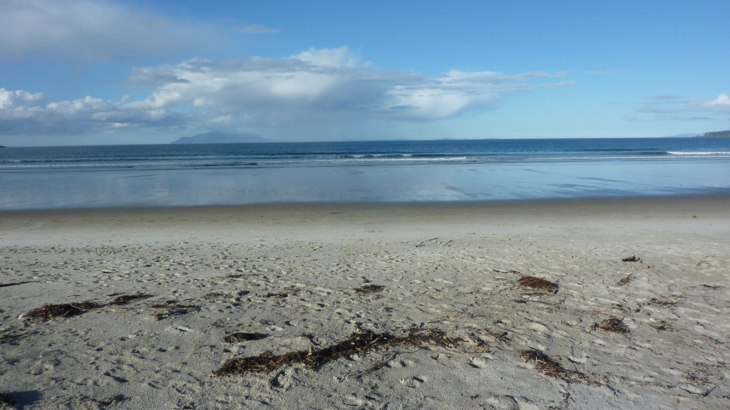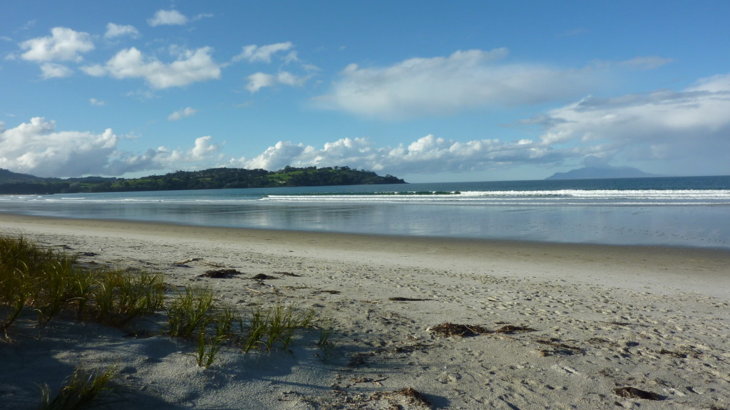 Danach ging’s dann zusammen nach Warkworth, zum nächst‘ größeren und vermutlich auch einzigen Supermarkt in der Umgebung, um den Lebensmittelvorrat bis zum Wochenende aufzufüllen. Glücklicherweise drehten wir auf der Rückfahrt einen kleinen Umweg, um zum Omaha Beach zu gelangen. Zum Glück!