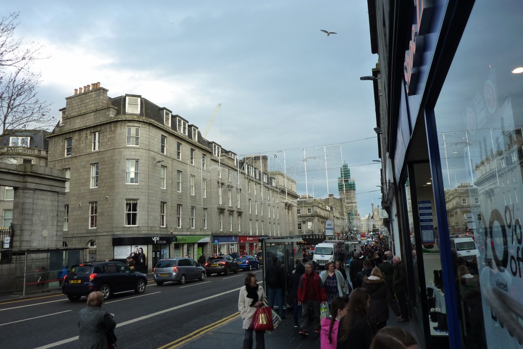 Aberdeen – der kleine Bruder von Edinburgh und Glasgow. Neben vereinzelten Demonstrationen und vorweihnachtlichem Shoppingfieber wird das Großstadtleben von Bauarbeiten und zahlreichen kleinen Cafes dominiert.