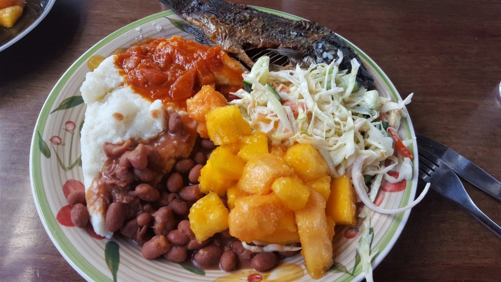 Wie bereits angesprochen – Nsima darf auf keinem Teller fehlen. Nsima wird traditionell aus Wasser, Salz und Maismehl hergestellt und mit den Händen gegessen, ganz korrekt nur mit der rechten Hand, indem man eine Kugel formt und die pürrierte Tomatensoße damit auftunkt. Nun bin ich kein Ernährungsexperte, aber bewiesen ist, dass schlechte Ernährung und Unterernährung die menschliche und damit auch wirtschaftliche Entwicklung beeinflusst. Durch den Überkonsum an Nsima fehlen dem Körper andere wichtige Lebensmittel wie Gemüse, Früchte, Bohnen, Nüsse, Fleisch oder Fette – was nun tun wenn man sich diese Dinge nicht leisten kann?