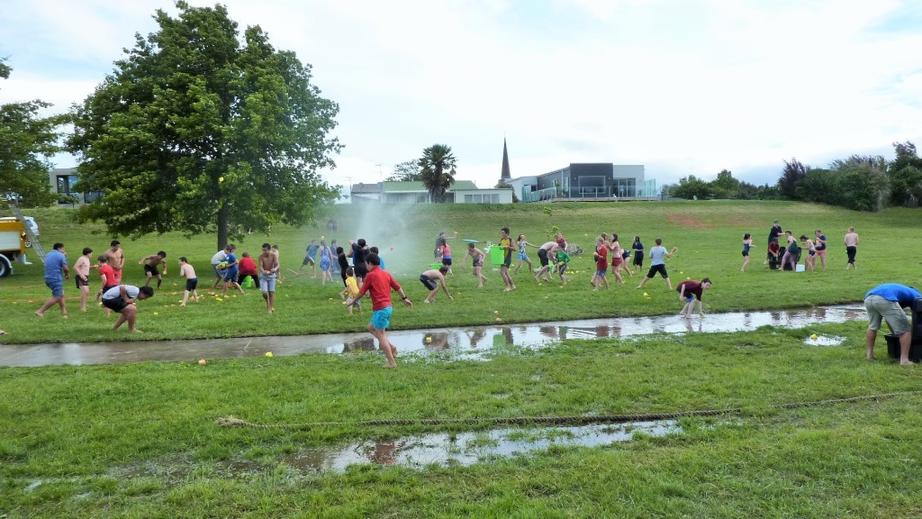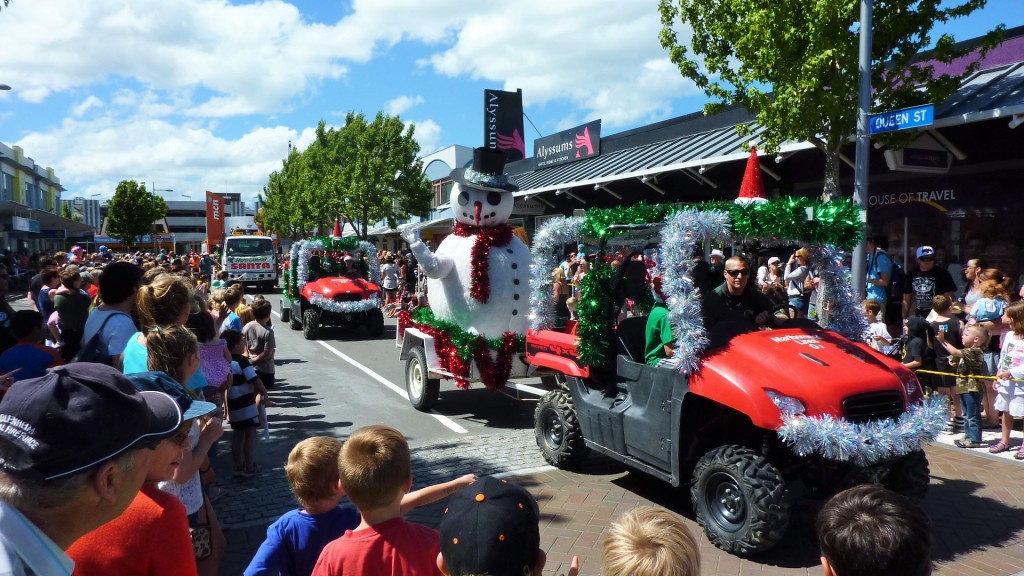 … und das ist schon verdammt komisch! In der letzten beiden Wochen sind wir durch den Norden der Südinsel gereist. Zur Zeit erreichen uns viele Buchungsanfragen für Weihnachts- und Geburtstagsfeiern oder Feste von Städten und Kommunen. Das letzte Event wurde von der Stadt Blenheim organisiert, ca. 1 1/2 Stunden nördlich von Nelson. Zur Weihnachtsparade, vergleichbar mit Karneval in Deutschland, nur bei 32° und Sonne (!), sollten wir mit 3 Hüpfburgen aushelfen. Ein weiteres Event gab es am nächsten Tag in Motueka, 30 Minuten südlich von Nelson. Die 250$ Startgeld haben sich gelohnt, den mit den großen Waterballs und Hotrods haben wir ein vielfaches verdient.