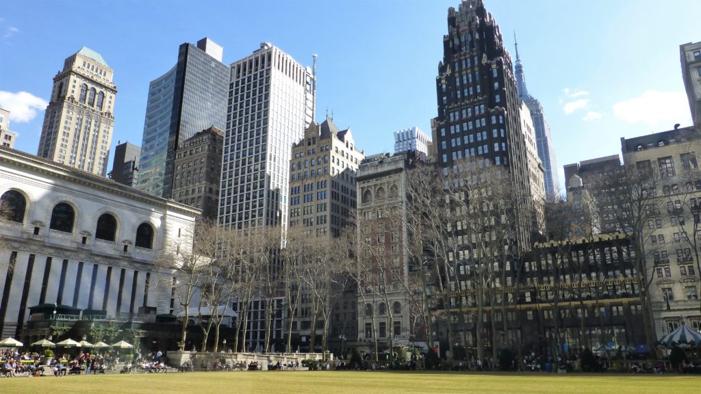 Central Park und Flatiron Building – „Die grüne Lunge New Yorks“ im Herzen Manhattans lockt jährlich über 25 Millionen Menschen an, und verschafft fernab vom Großstadt-Trubel der Millionenstadt ein wenig Luft zum atmen – ganz für sich ist man aber selbst hier nicht. Für kurze Mittagspausen bieten sich viele der zwischen den großen Häuserblocks gelegenen Grünanlagen mit Cafe’s und Wlan-Spots an, wie etwa der City Hall-, Union Square- oder Bryant Park – letzterer befindet sich direkt vor einer der drei großen öffentlichen Bibliotheken. Das Feierabendbier sollte man allerdings an anderer Stelle genießen, da wie im Rest des Landes gilt: Kein Alkohol in der Öffentlichkeit.