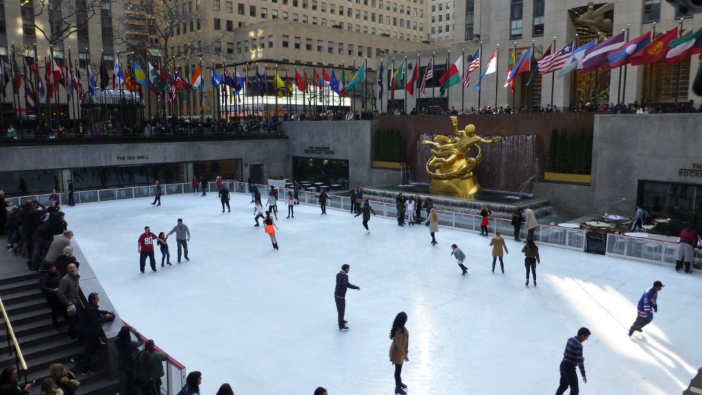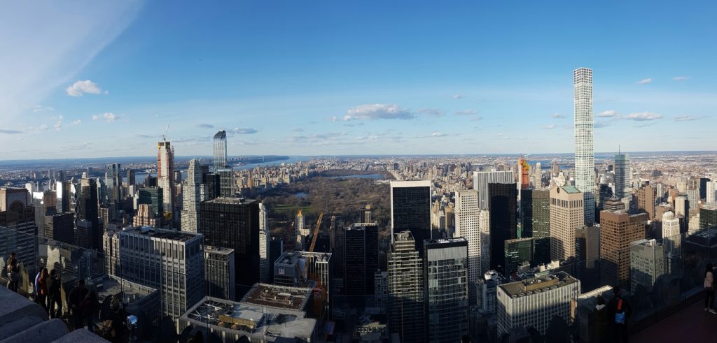 Rockefeller Center – An guten Tagen lohnt sich ein Besuch des Rockefeller Centers, von dem man den Central Park auf der einen und Empire State Buildung und Manhattan-Skyline auf der anderen Seite bewundern kann. Wer sich in den frühen Abendstunden auf in den 70. Stock macht, kann zudem einen Sonnenuntergang auf der New Jersey-Seite beobachten. Unter den Mittlerweile rund 6.000 Hochhäusern ist das Empire State Buildung mit 381m nach One World Trade Center (541,3m) und 432 Park Avenue-Tower (425,8m) (s.u., weltweit höchstes reines Wohnegebäude) das dritthöchste Gebäude der Stadt. Um im vermutlich umkämpftesten Wohnraum der Erde nicht leer auszugehen, sind Unternehmer und Bauherren mittlerweile bereit irrsinnige Summen zu bezahlen – so ist Donald Trump etwa dafür bekannt die ungenutzten Höhenmeter seiner „Nachbarn“ abzukaufen, um weiter in die Höhe bauen zu dürfen.
