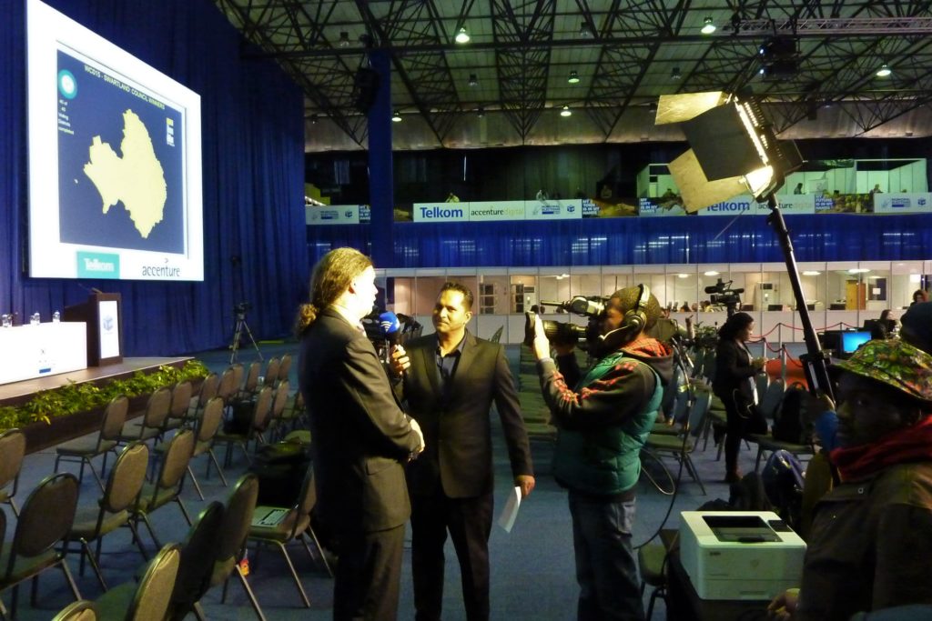 Um schnellst-möglich Wahlergebnisse aus erster Hand zu bekommen, fuhr ich am heutigen Donnerstag mit dem Referatsleiter der Politik-Abteilung, unserem Pressevertreter und dem Botschafter zur nationalen Stimmenauszählung des IEC (Independent Electoral Commission). Dabei suchte der ranghöchste Regierungsvertreter den Kontakt mit Spitzenpolitikern und Parteifunktionären und ließ sich zudem von verschiedenen nationalen Medien interviewen.