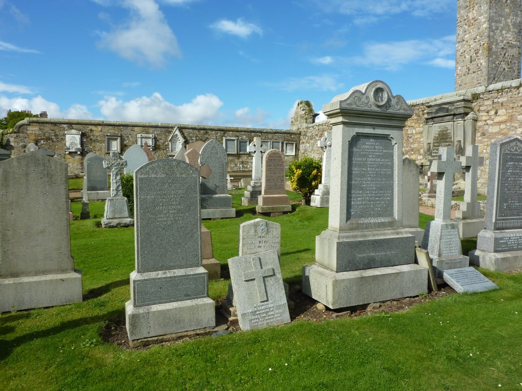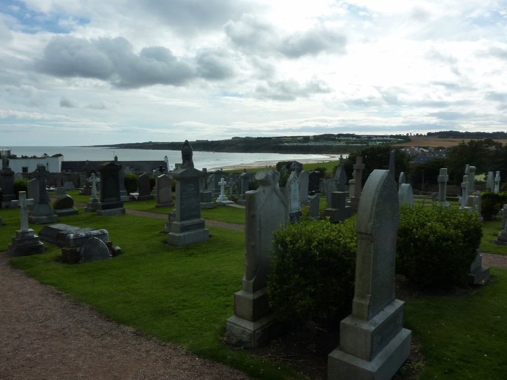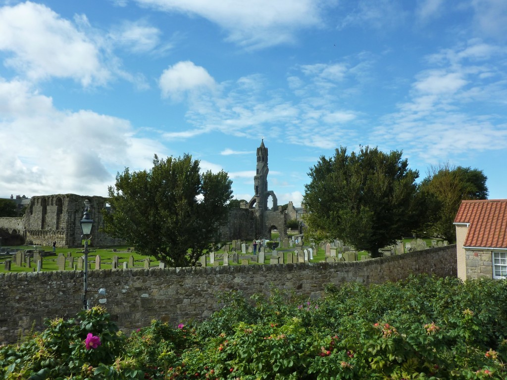Ein Friedhof mit Meerblick. Passiert man die Kathedrale in südwestlicher Richtung, so verlässt man den Friedhof durch ein großes Eingangstor, von dem heute nicht mehr allzu viel übrig ist. Bei gutem Wetter bietet der Pier neben einem ausgezeichneten Blick auf die Überreste der Kathedrale ein ebenso ausgezeichnetes Panorama auf St. Andrews.