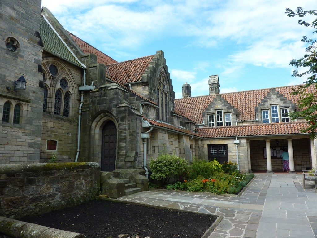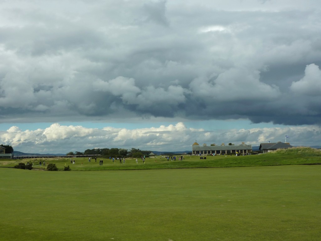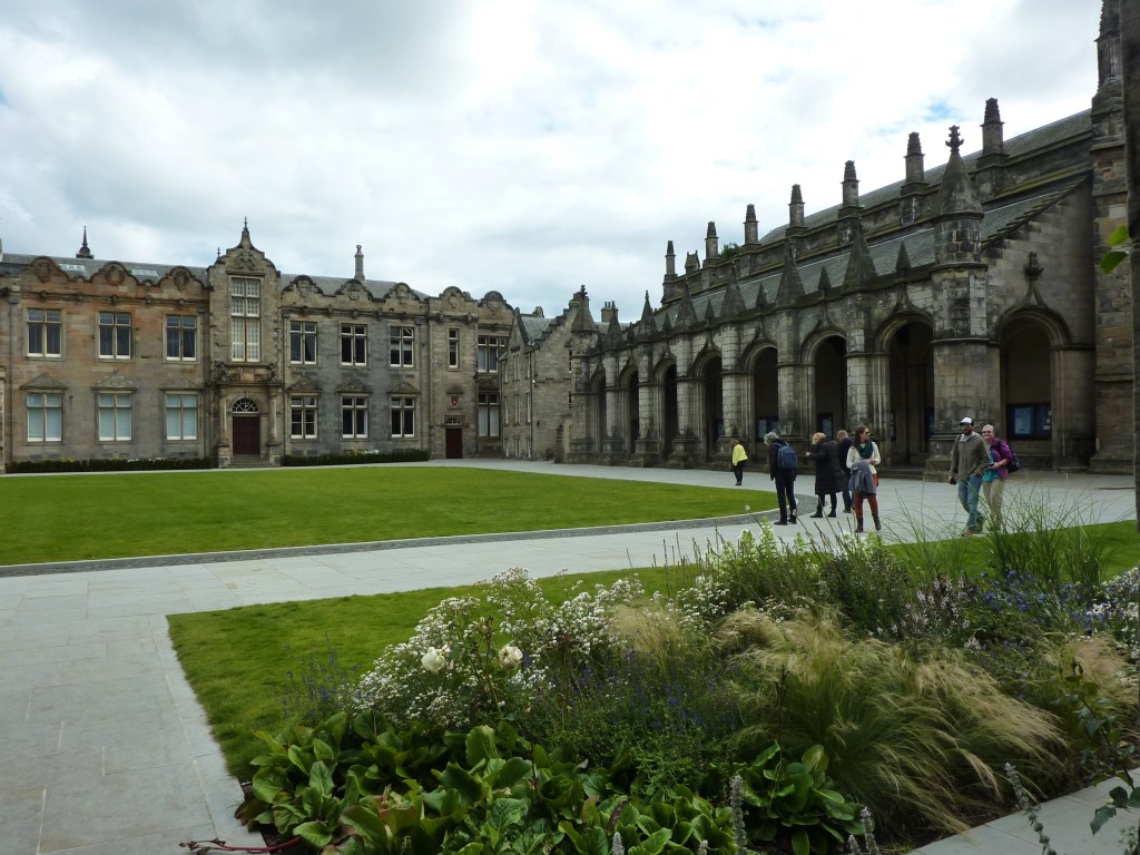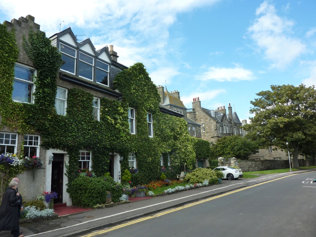 Nach weniger ausreichendem, dafür immerhin über(st)durchschnittlich teurem Fish & Chips Lunch in der Fußgängerzone fehlte eigentlich nur noch ein Besuch beim öffentlichen Golfplatz – St. Andrews ohne Golf? Das wäre schon seltsam… also auf zum Royal and Ancient Golf Club of St. Andrews. Dabei passieren wir nicht Schloss Bellevue, sondern die University of St. Andrews.