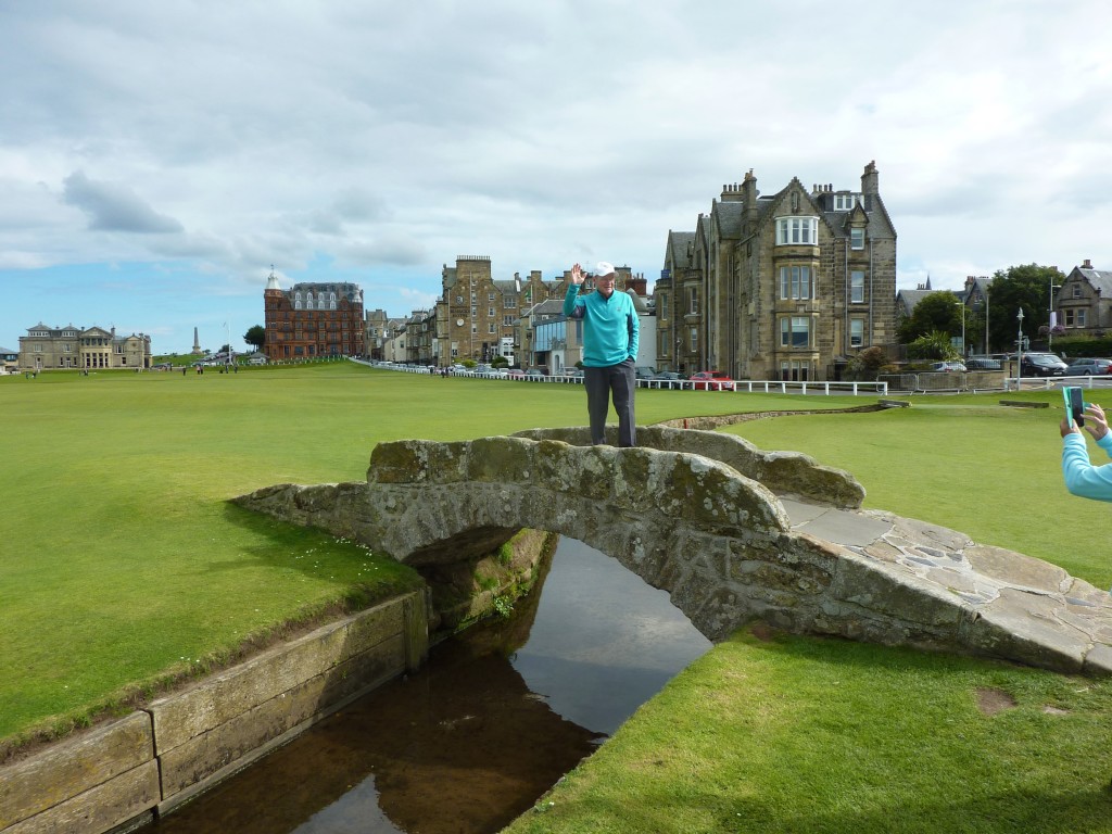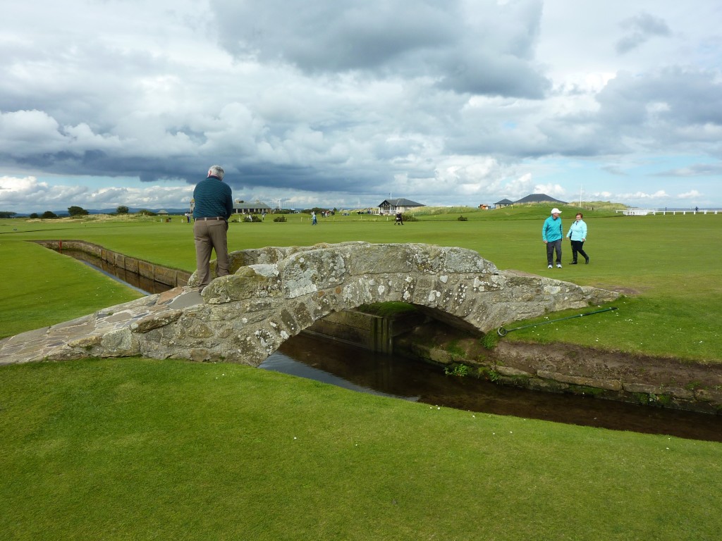 Das Wahrzeichen des möglicherweise bekanntesten Golfplatzes der Welt: An Sonntagen, wenn der „Old Course“ für jedermann begehbar, demnach also nicht bespielbar ist, wird die Swilken Bridge zum großen Photo- Meetingpoint. Viele Nicht- Schotten stehen geduldig Schlange, um eines der begehrten Fotos zu ergattern.