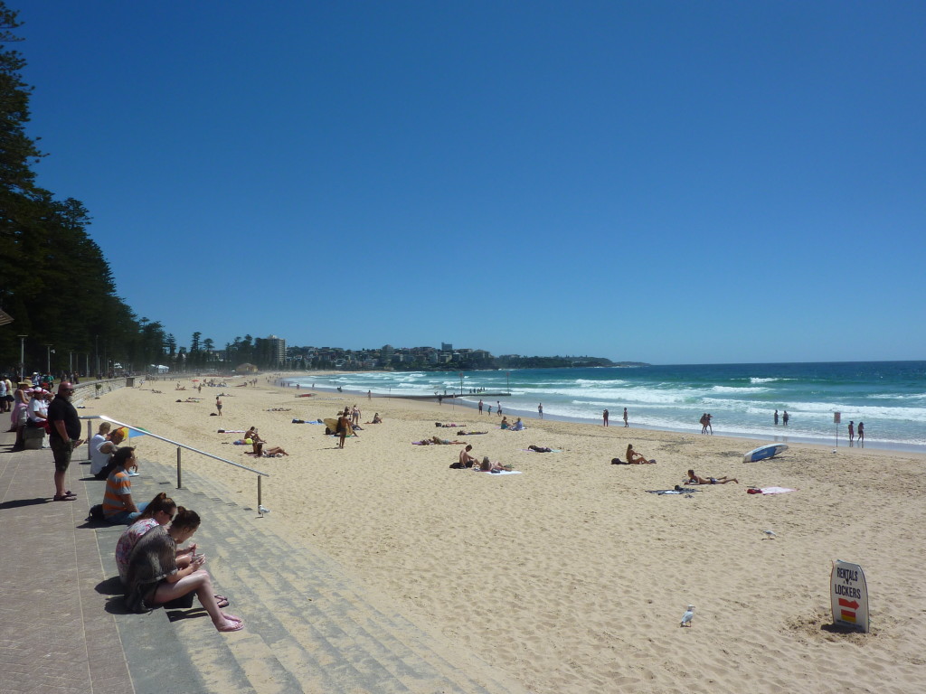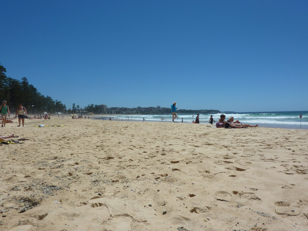 Die Fähre brachte mich in 45 Minuten zum bekannten Manly Beach. „Manly hat wegen seines langen Ozeanstrandes und der gleichmäßigen, vor allem bei Surfern beliebten Wellen über die Grenzen Australiens hinweg Bekanntheit erlangt. Im Unterschied zu den Stadtstränden Bondi Beach, Coogee Beach, Bronte Beach und Tamarama ist in Manly das Leben noch wesentlich entspannter. “ (Wikipedia)- Absolut Richtig!