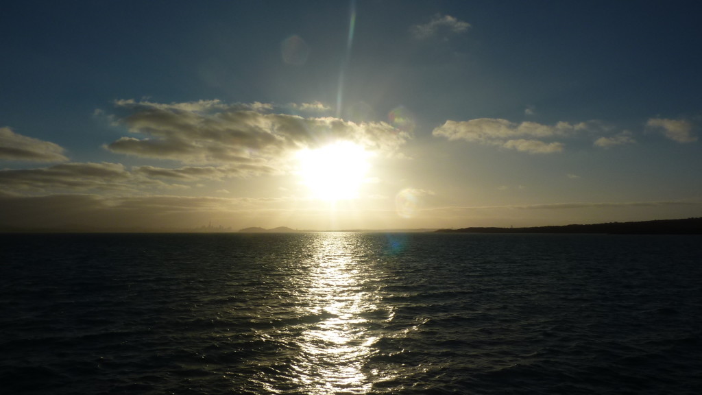 Nach 6 Wochen Inselleben habe ich mich heute erfolgreich dem Festland genähert. Bei absolut perfekten Wetter konnte die Fähre zurück nach Auckland auslaufen: