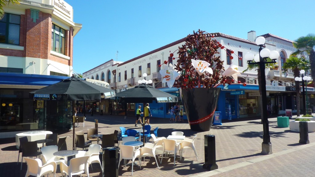 Vor uns lagen an diesem Donnerstag 6 Stunden Fahrt bis an die Ostküste, zum häufig als am sonnigsten beschriebenen Platz Neuseelands. Über die Art Deco erreichten wir gegen Spätnachmittag Napier in der Hawke’s Bay Region. Abends noch auf Empfehlung mehrerer Einheimischer im indonesischen Restaurant, erkundeten wir am nächsten Morgen Teile der historischen Innenstadt.