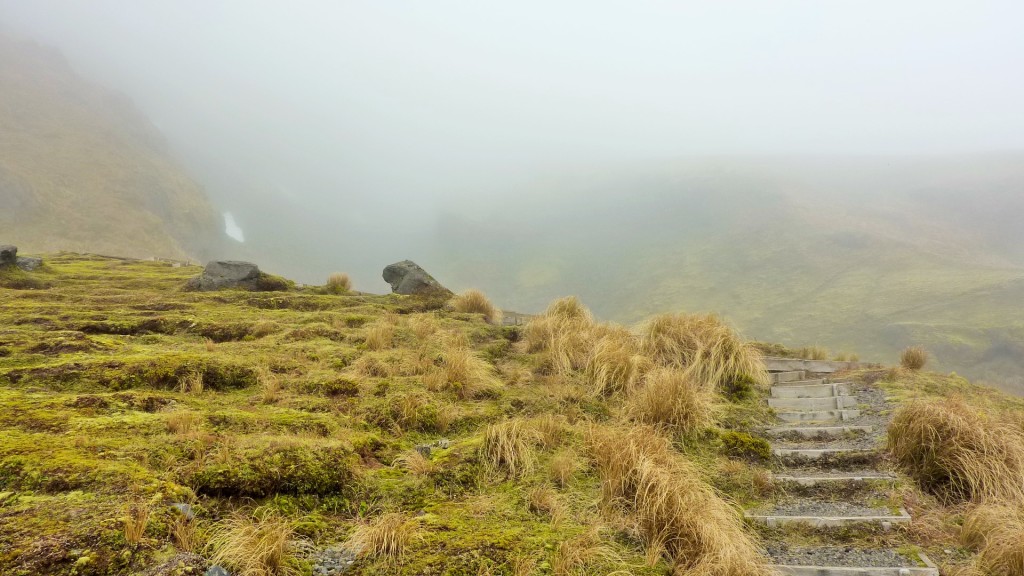 Ausschlaggebend für die Wahl des „Summit Tracks“, die Route von ganz unten bis nach ganz oben, 2518m, war folgender Warnhinweis: „Expect snow/ice on upper mountain slopes. The marked route into the crater is iced over. Access to the summit and upper mountain will require alpine equipment and experience.“ Alpine equipment und experience hatten wir natürlich nicht, alledings genug Zeit und Lust, um es bis ganz nach oben zu schaffen. 🙂