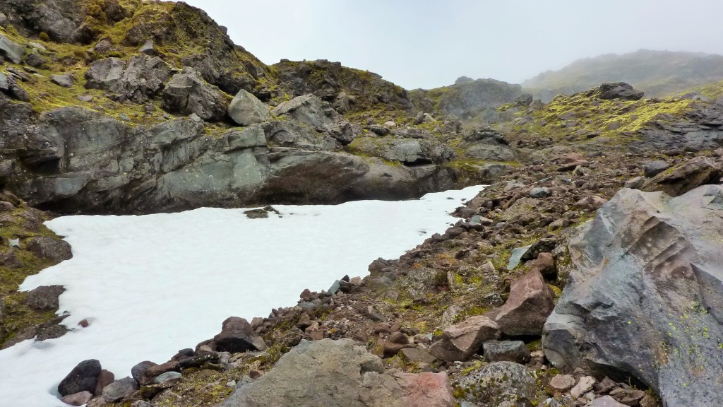 Auf ca. 2100-2200m sah es dann allerdings noch weißer aus, sodass wir ohne Schneeschuhe, Eispickel und Erfahrung nicht weiter klettern konnten. Hinzu kam die Information vom Department of Conservation (Doc), dass vor 6 Tagen zwei junge Wanderer beim Versuch, den Berg zu besteigen, vom Weg abgekommen und ums Leben gekommen sind. Der Sommer beginnt auf dem Mount leider erst einige Monate später.