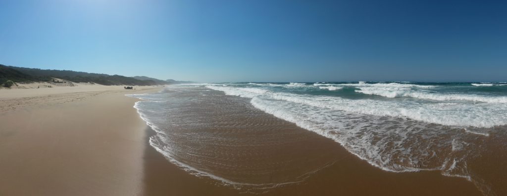 Cape Vidal liegt rund 35 Kilometer nördlich von St. Lucia im Wetland Park und lädt mit seinen schönen, weitläufigen Sandstränden und warmen Temperaturen (etwa acht, neun Grad mehr als in Pretoria) zum Schwimmen im Ozean ein – da es hier allerdings keine Hainetze gibt ist stets Vorsicht geboten …